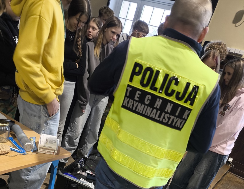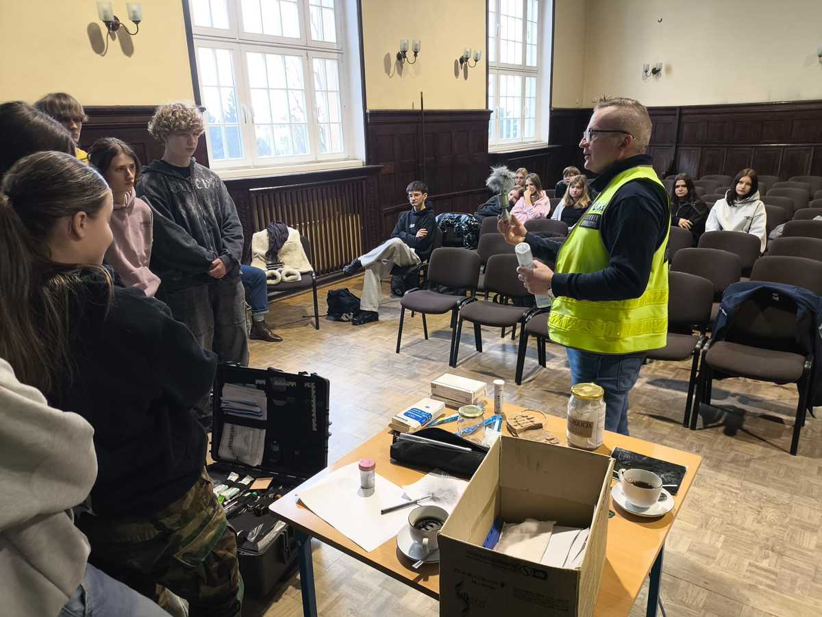 Technik opowiadał o rzemiośle, demonstrując poszczególne narzędzia, dodatkowo policjanci omówili kilka zdarzeń kryminalnych z powiatu, gdzie praca technika okazała się kluczowa, a zabezpieczone ślady wzbogaciły istotnie materiał dowodowy i pozwoliły ustalić ich sprawców.